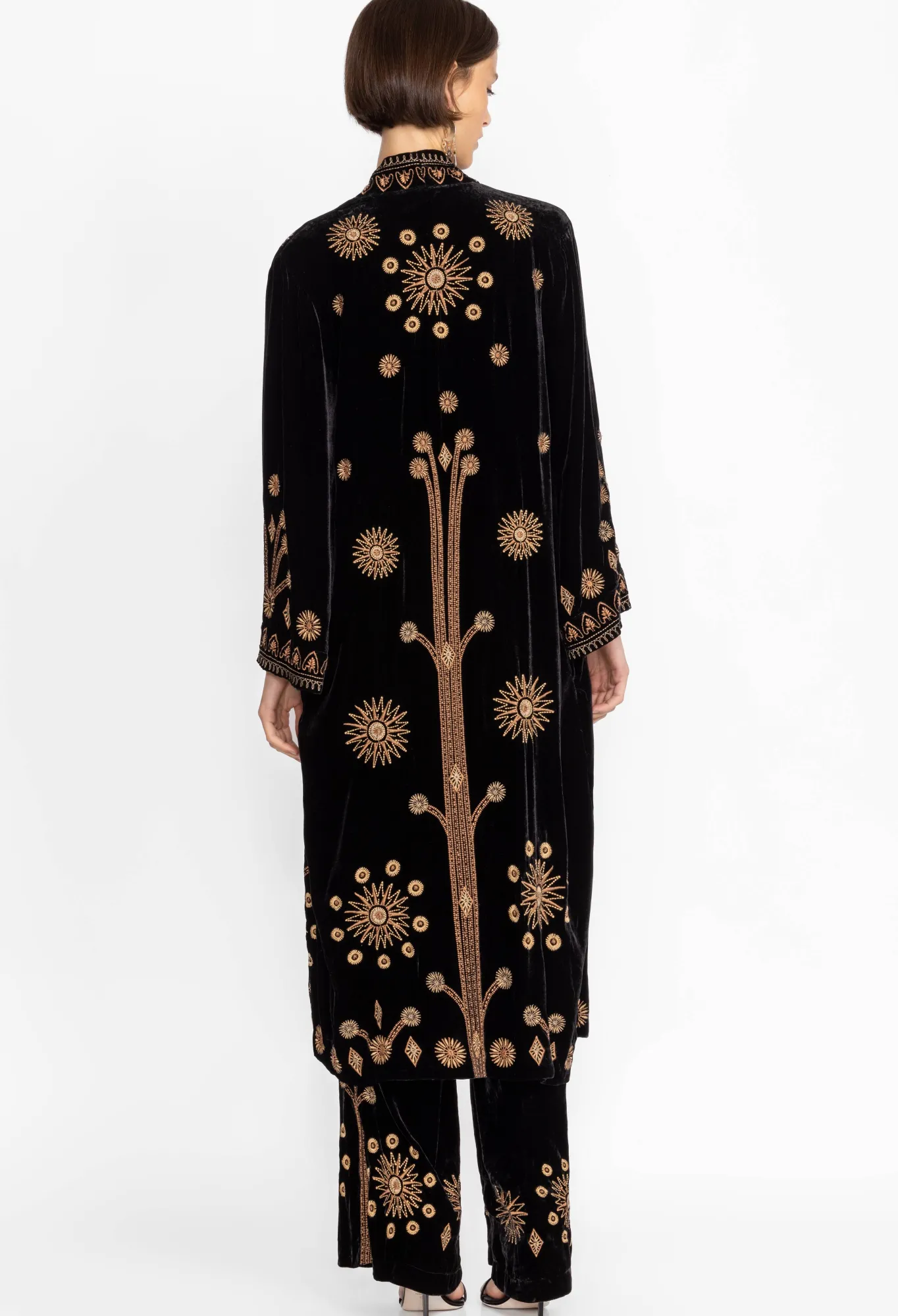 Providing A Luxe Layer For Cooler Days, The Heidi Velvet Kimono Coat Adds Stunning Detail To Any Look. Crafted From A Unique Silk Blend, This Velvety Midi-Length Coat Is Highlighted With Intricate Placement Embroidery. Layer Over A Classic Little Black Dress And Add Sparkling Heels For An Evening Out.