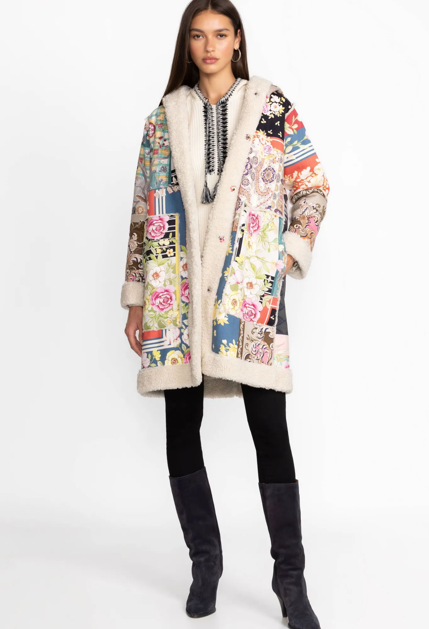 Showcasing A Vibrant Patchwork Of Color And Pattern, The Kerry Suede Coat Offers Comfort And Warmth For The Cooler Seaso…