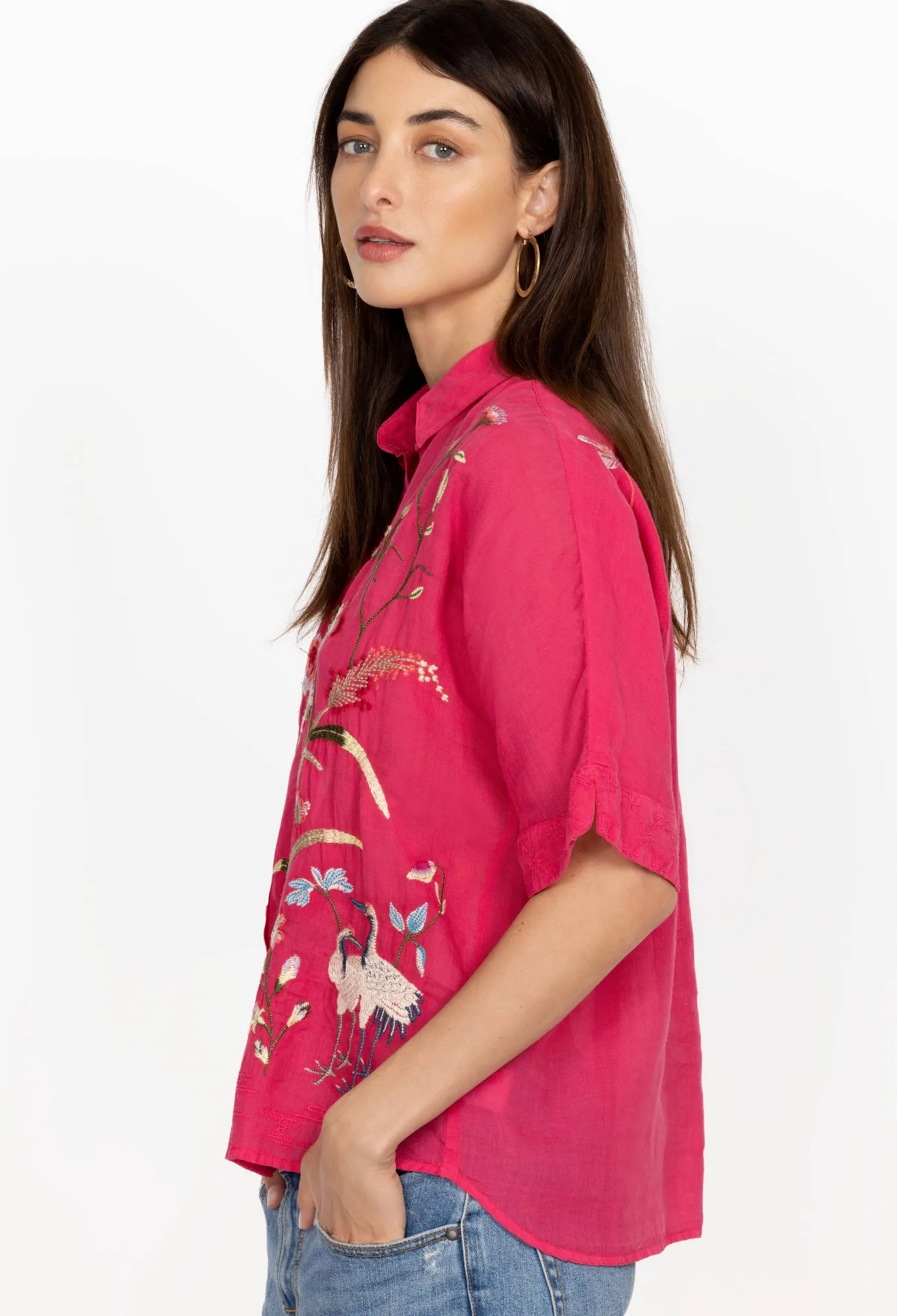 Designed From Breathable Ramie, The Geniveve Relaxed Dolman Shirt Reworks Traditional Shirting With Blossoming Florals. …