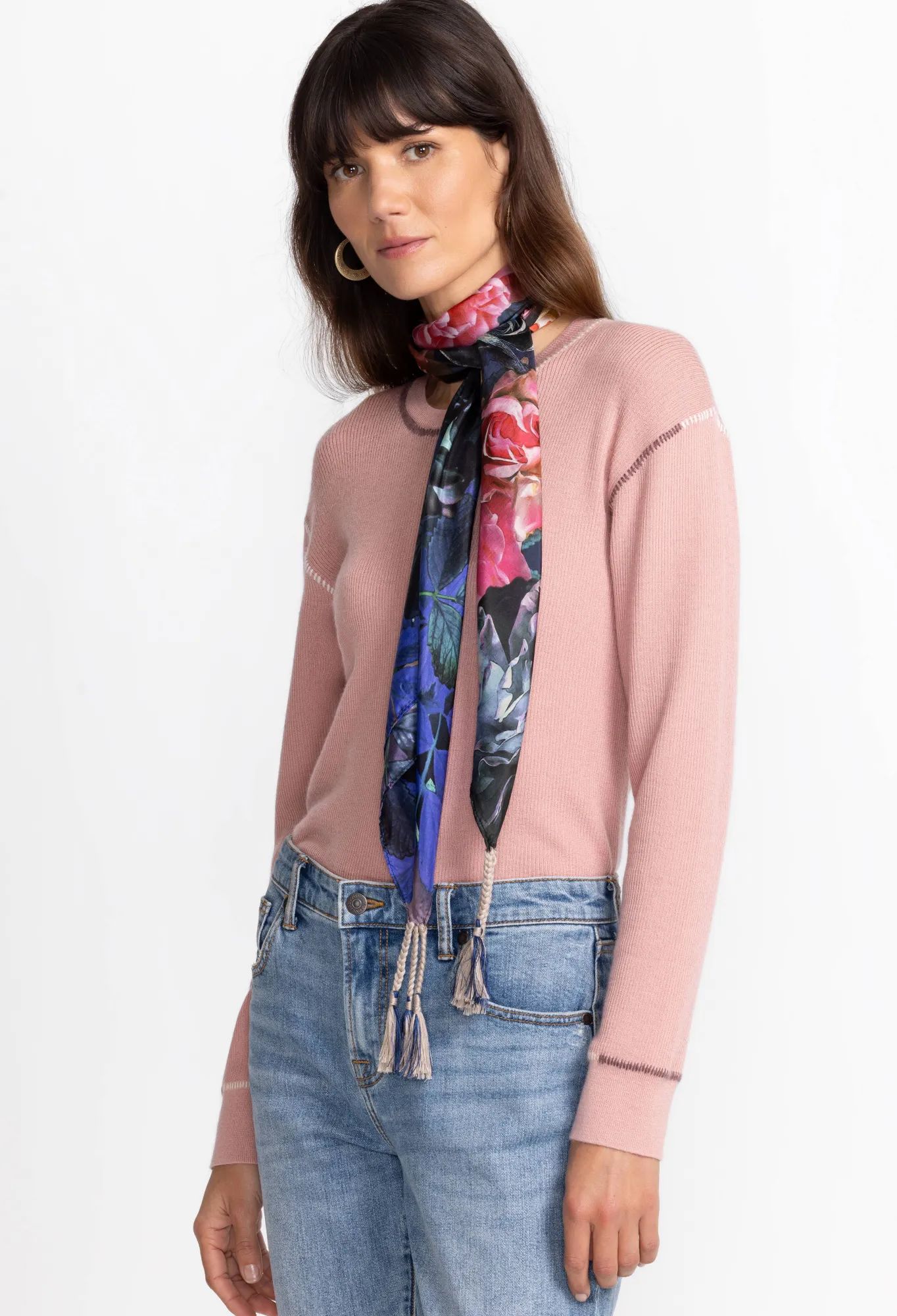Dreamed Up In Rich Hues, The Studio Scarf Adds An Artistic Spin To A Classic Accessory. Enhanced By White Tassels, This Scarf Is Designed From Sumptuous Silk And Features A Romantic Floral Pattern For A Feminine Finish. Style This Scarf With A Sweater And Jeans For A Contemporary Approach To Daytime Dressing.