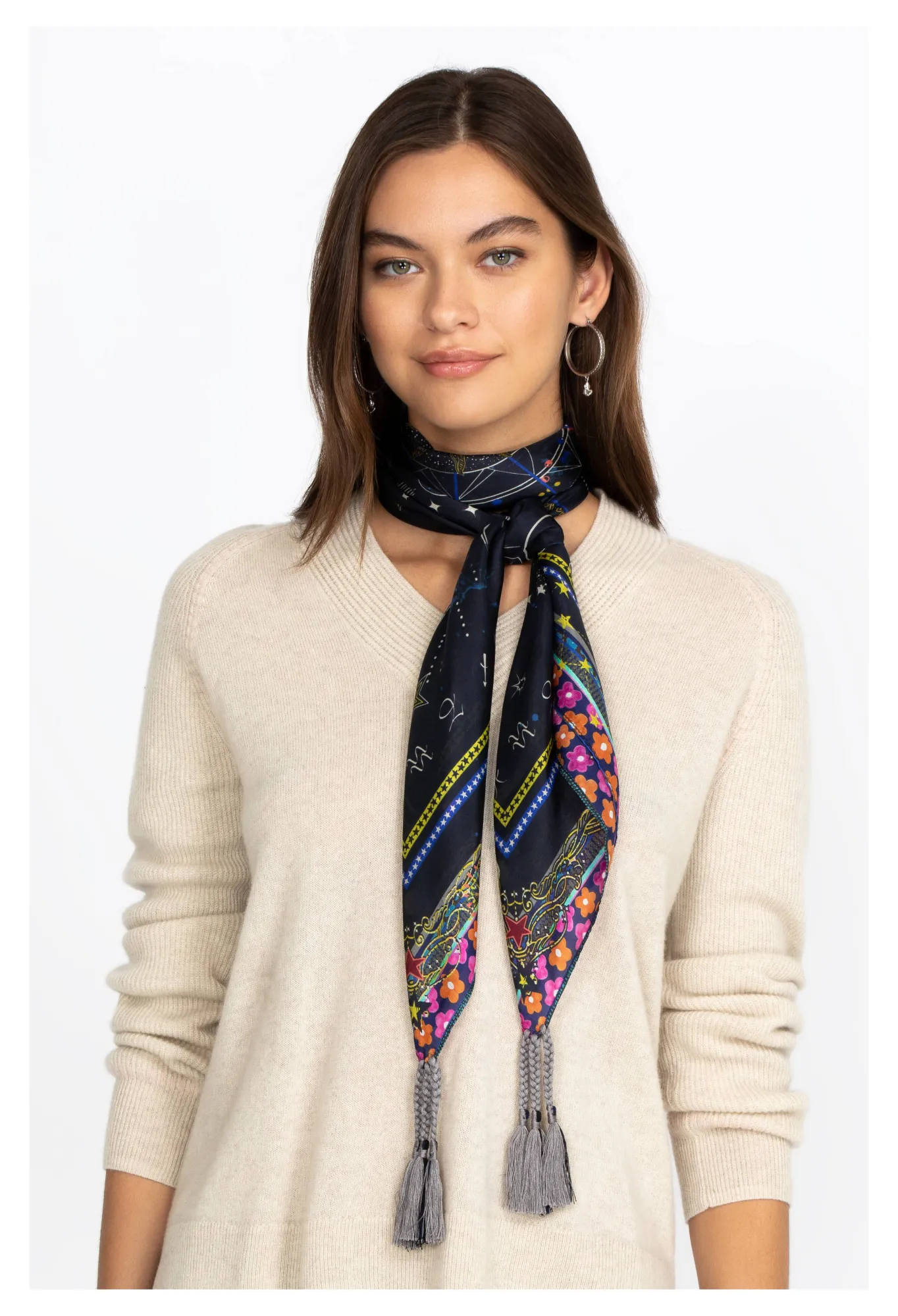 A Silk Accessory Like The Celestin Scarf Can Instantly Elevate Your Look And Turn A Simple Outfit Into A Fashion Statement. Whether You Like Wearing Scarves Around Your Neck, Draped Across Your Shoulders, Or As An Improvised Belt, The Celestin Scarf Will Stand Out Thanks To Its Gorgeous Astral-Inspired Motifs And Rich Colors. Pair It With Sun And Moon-Themed Jewelry For A Boho-Chic Look!