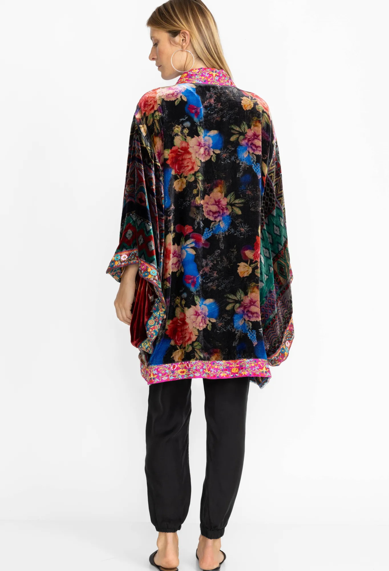 Conveying A Romantic Mood, The One Of A Kind Reversible Velvet Midi Kimono Charms With Its Midnight Color Scheme And Lux…