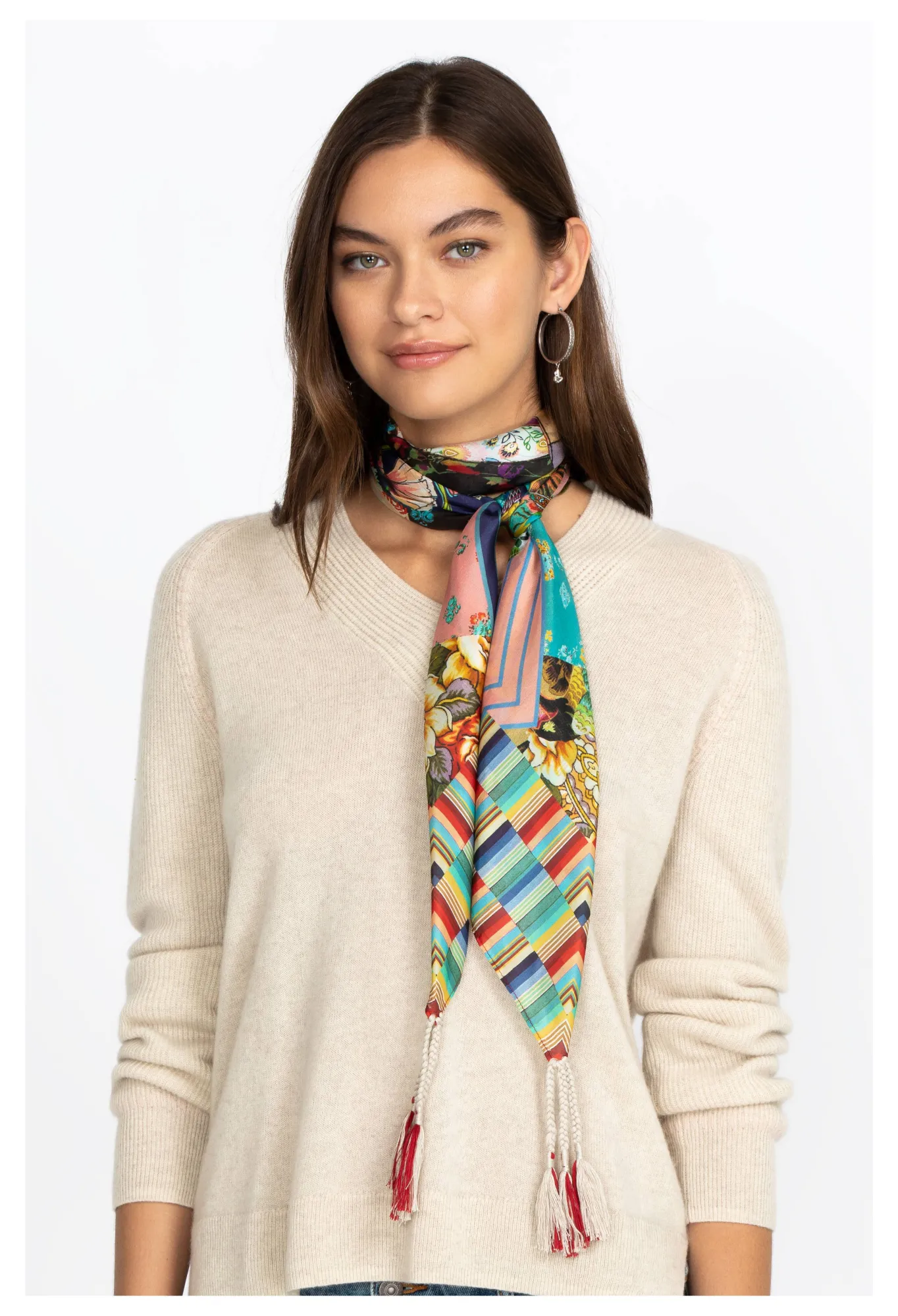 The Geometric Motifs Of This Patchwork-Inspired Accessory Will Add A Touch Of Modernity To Your Outfit. With Its Vibrant Colors, Original Print, And Smooth Silk Texture, The Imagination Scarf Is As Versatile As It Is Elegant. Wear It To Add Some Interesting Colors, Prints, And Textures To Your Outfits.