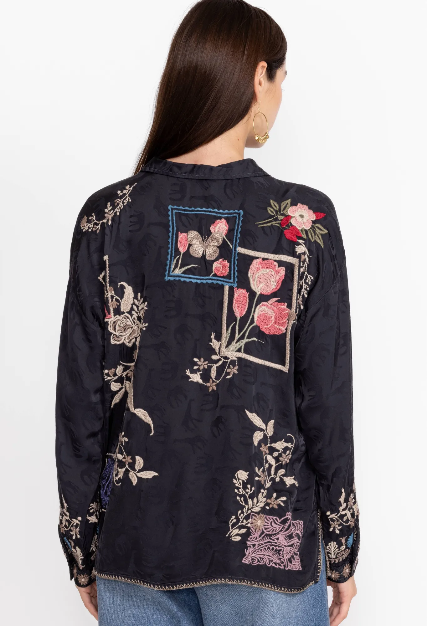 Made From A Lightweight Fabric, The Briony Blouse Puts A Vintage Twist On A Bohemian Style. Perfect For Daily Pursuits, This Blouse Features A Collar, A Front Button Fastening, Long Sleeves, And A Colorful Placement Embroidery Comprising Floral Patchwork Motifs. Style This Blouse With Jeans For A Versatile Daytime Ensemble.