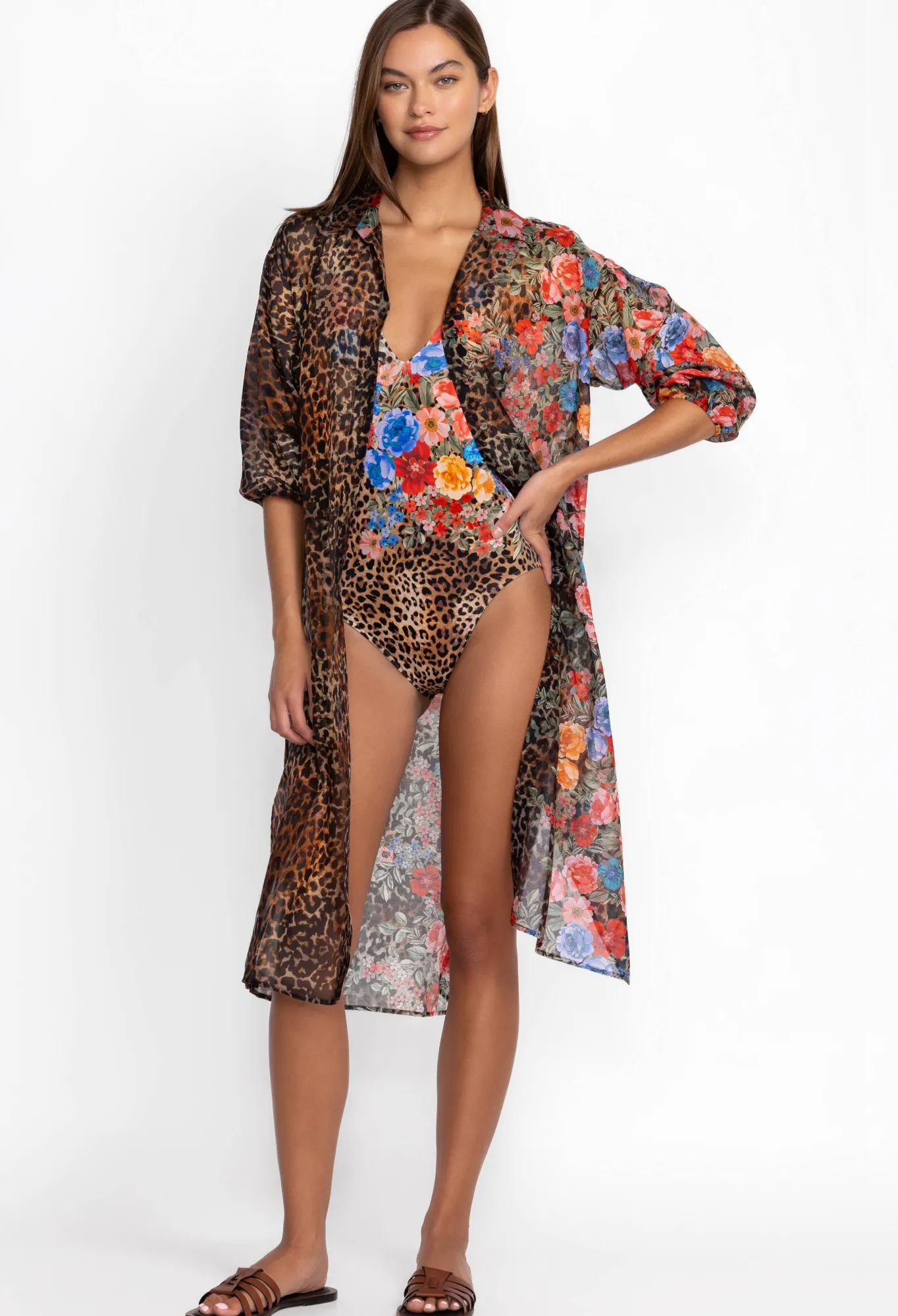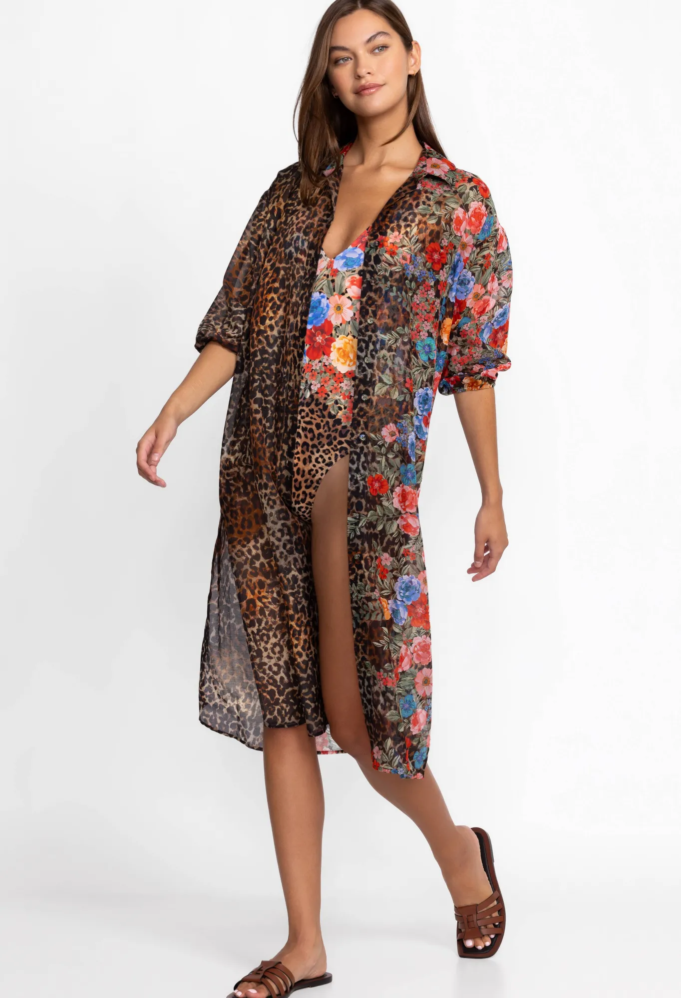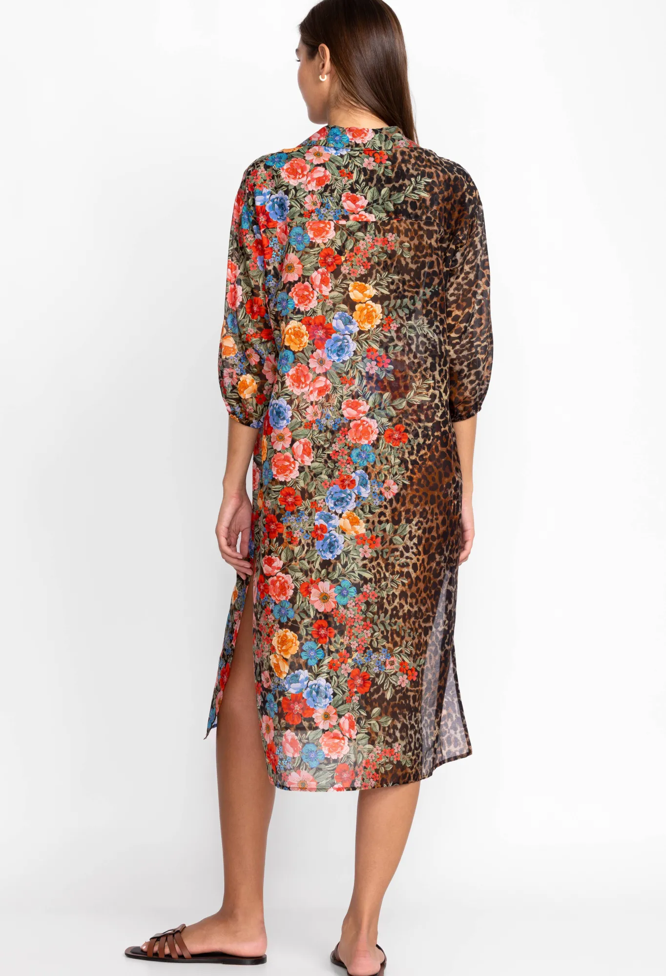 A Vacation Favorite, The Cheetah Long Shirt Dress Is A Practical Beach Staple That Doesn’T Compromise On Style. This Shirt Is Made From A Breathable Cotton Silk Blend With A Selection Of Vibrant Flowers Scattered Across The Front And Back. This Shirt Dress Can Be Worn Open With A Tank And Jeans Or A Bikini For A Nonchalant Finish.